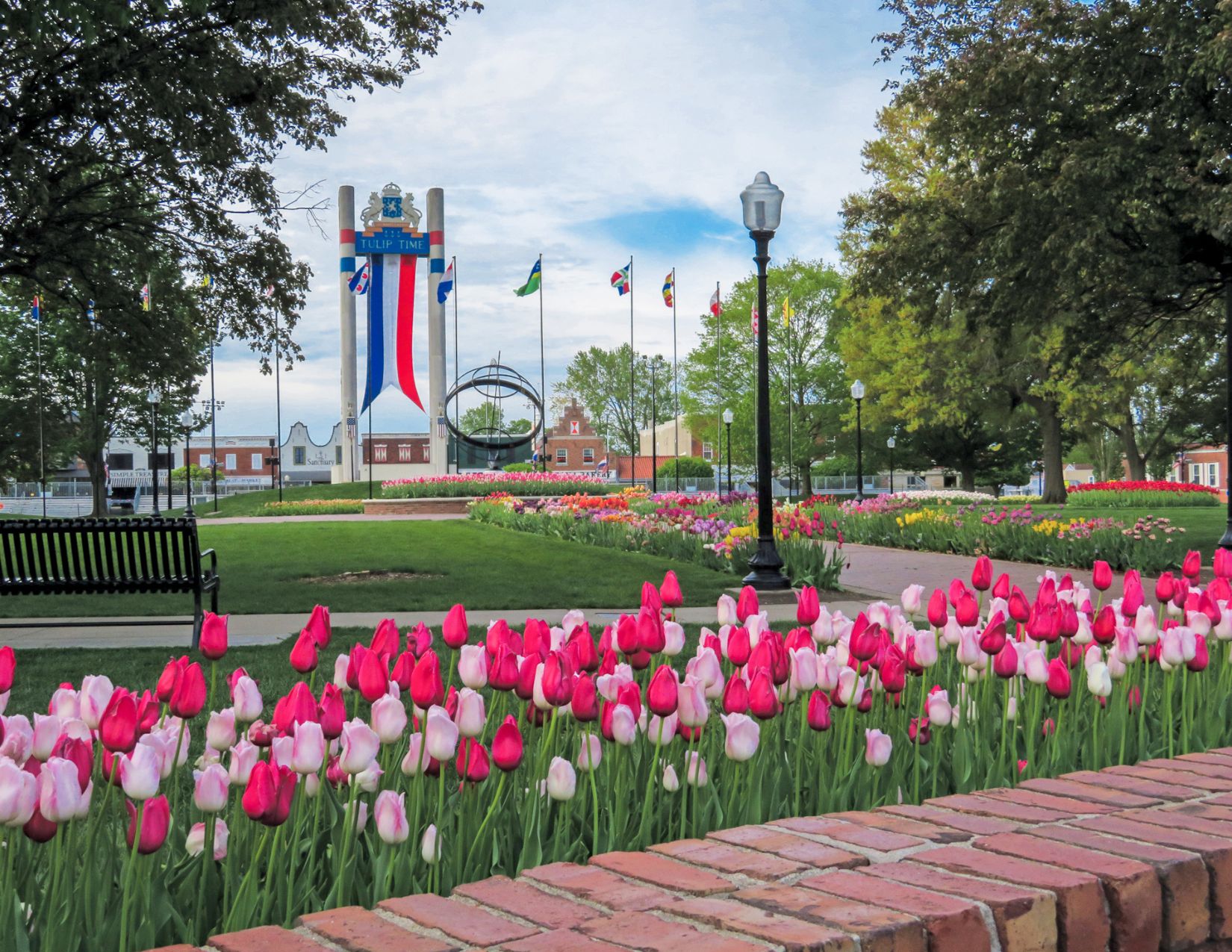 FEATURES: information windmill, seasonal plant and tulip displays (including the famed “Avenue of Tulips” and interactive educational art), 1900's fountain, Civil War statue, sundial, Tulip Toren, sidewalk system lined with 19th Century lamp posts, hub for summer events (festivals, market, concerts), tables